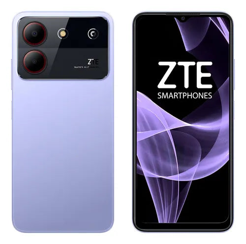 El ZTE Blade A54 es un smartphone de color morado con un lector de huellas digitales integrado en el botón de desbloqueo para facilitar el acceso.